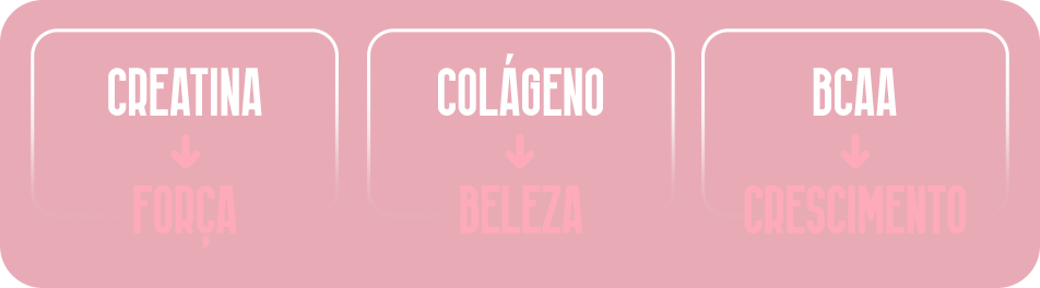 Nossa fórmula foi estudada justamente para potencializar os seus resultados, por isso unimos esses 3 suplementos tão essenciais para quem está buscando evoluir nos treinos e na dieta.